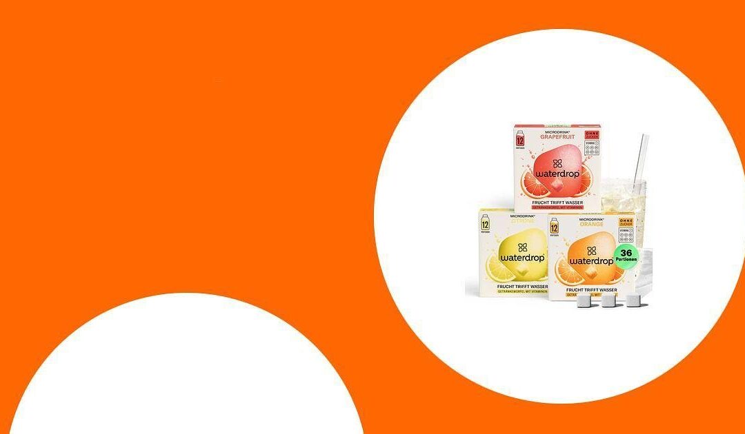 B. waterdrop Microdrink) wegen ihrer Portabilität und des niedrigen Gewichts; das waterdrop LIMONADE Bestsellerset kostet 26,97 € für 36 Drops und löst sich als 1 Drop in 400–600 ml kaltem Wasser auf.
